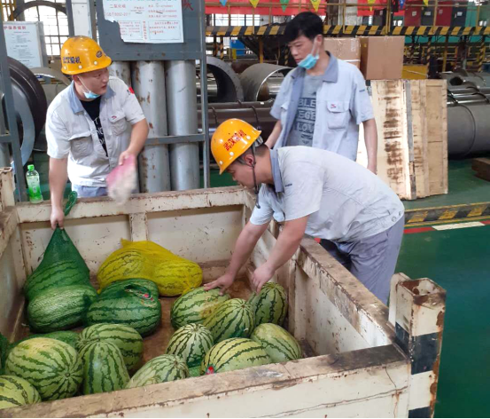 各部門根據生產實際情況以及防暑降溫具體要求,一是科學組織,合理調整作業時間,關注員工身體和精神狀況,做好防暑降溫應急準備;二是保證供應,重點防護,保證一線作業人員需求,每天為員工提供充足的清涼飲料;三是人文關懷,細致入微,各部門將防暑降溫工作落實到實處,為員工購買西瓜、各類飲品、毛巾、沐浴露等防暑清涼物資,慰問在高溫下堅守的員工,為他們送去了一絲絲清涼、一份份溫情……